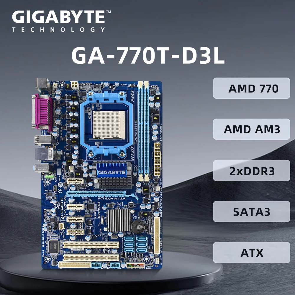 AM3 Gigabyte GA-770T-D3L Motherboard Support FX-6100 FX-8100 x6 1100T CPU,AMD 770,Supports DDR3 1666(OC) /1333/1066 MHz 8GB,ATX.