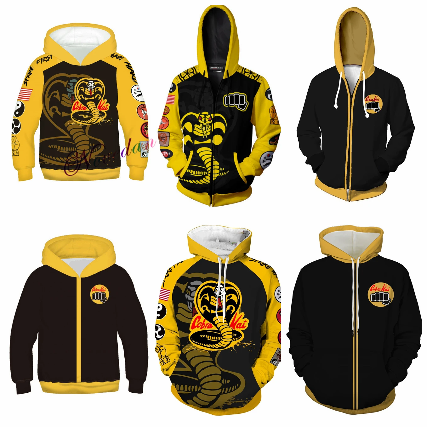 Anime KOF Cobra Kai Hoodie Cosplay Costume Taekwondo Karate Kids Adult Jacket Zipper Hoodie Sweatshirt Men Women Sports Coat