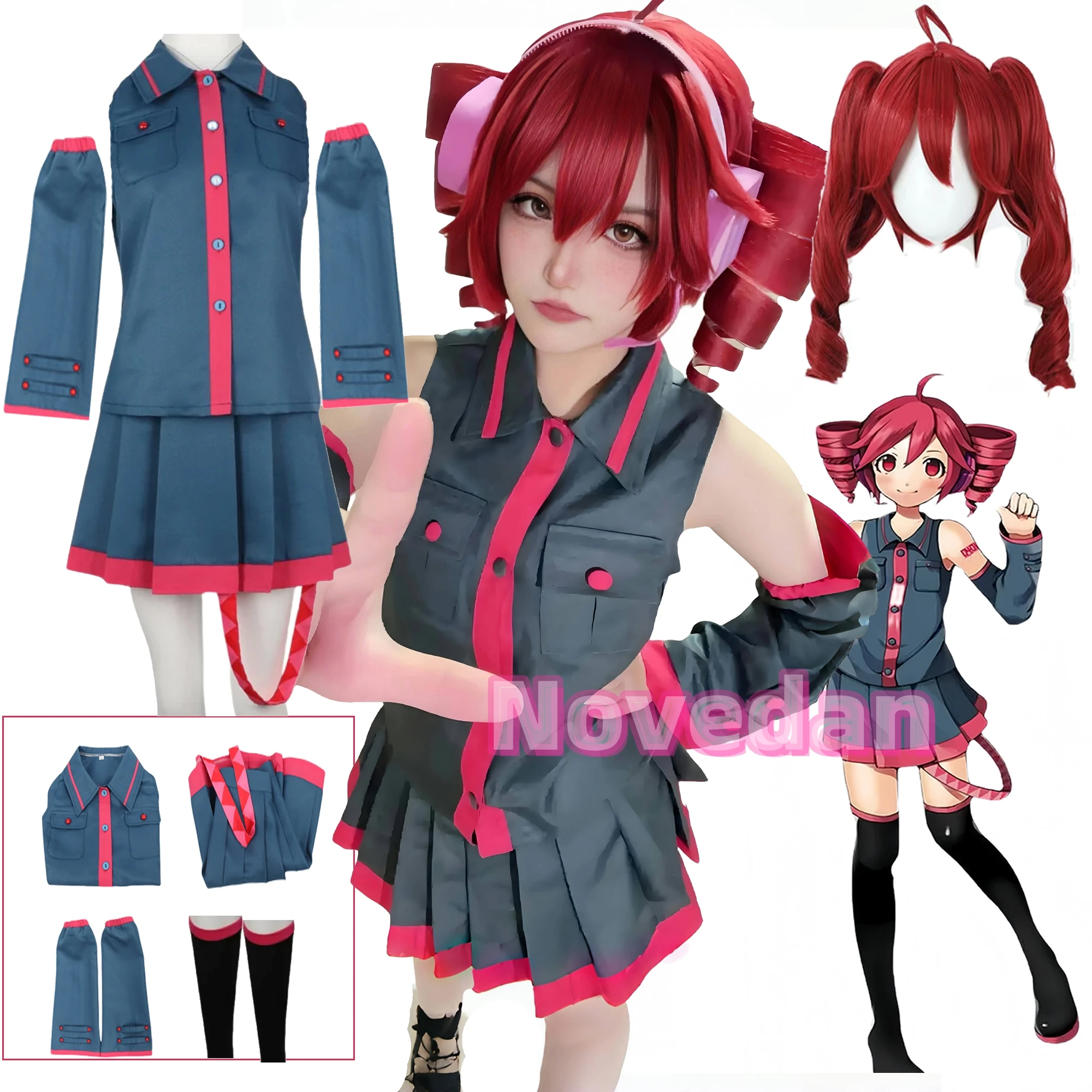 Kasane Teto Cosplay Outfit Wig Anime Miku UTAU Vtuber Role Play Halloween Costume Women Men Party Dress Uniform Suit