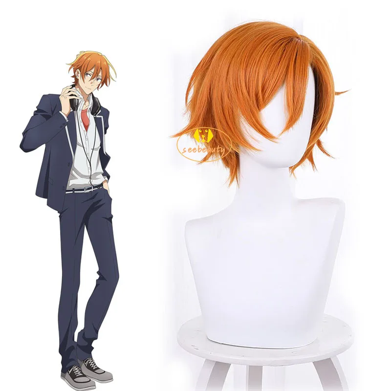 Anime Sasaki To Miyano Sasaki Shuumei Cosplay Wig Earrings Orange Short Hair Ear Stud Accessories Prop Sasaki and Miyano Boy
