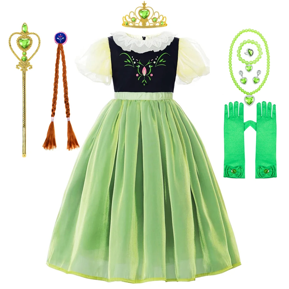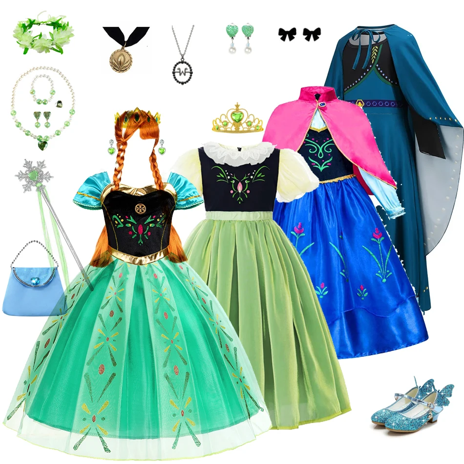 Anna Costumes for Girls Kids Summer Clothes Halloween Birthday Carnival Robe Party Disguise Princes...
