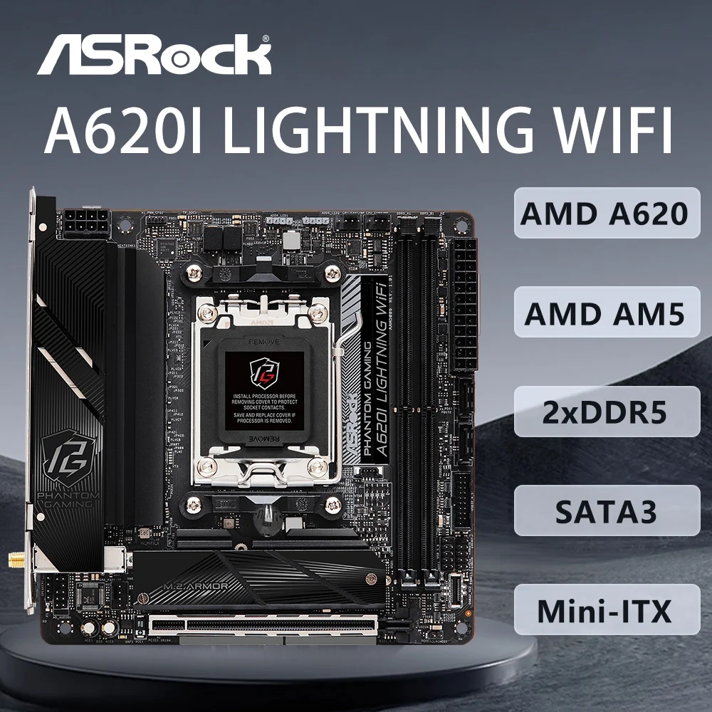 ASRock A620I Lightning WiFi Motherboard AMD A620 Support R9 7950X 7900X R7 7800X3D 7600X CPU AM5 DDR5 USB3.2 Gen2 M.2 Mini-ITX AM5