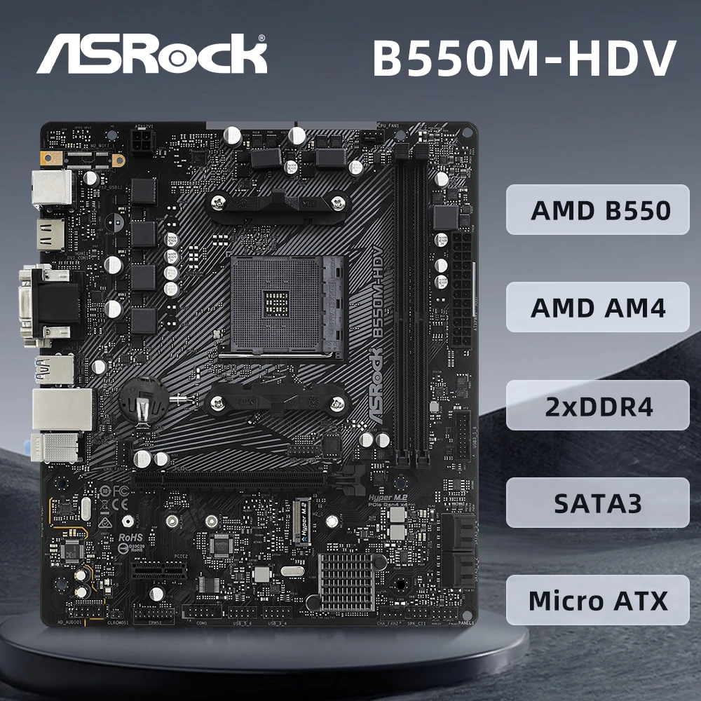 ASROCK B550M-HDV Motherboard AMD AM4 Support Ryzen 9 5950X R7 5800X R5 5600X3D CPU AMD B550 Chipset 2 x DDR4 HDMI 2.1 Micro ATX