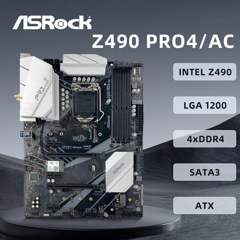 ASROCK Z490 PRO4/AC Motherboard Supports LGA 1200 i9-10900K i7-10700K i5-10400F CPU Intel Z490 Chipset 4xDDR4 M.2 PCIE 3.0 ATX