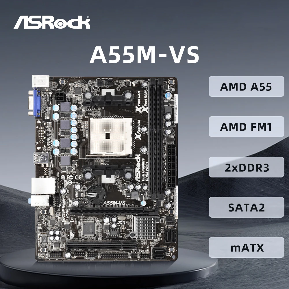 ASUS A55M-VS Motherboard Socket FM2 DDR3 For AMD A10/A8/A6/A4/Athlon Cpus SATA2 AMD A55 USB2.0 PCI-E X16 Placa-mãe