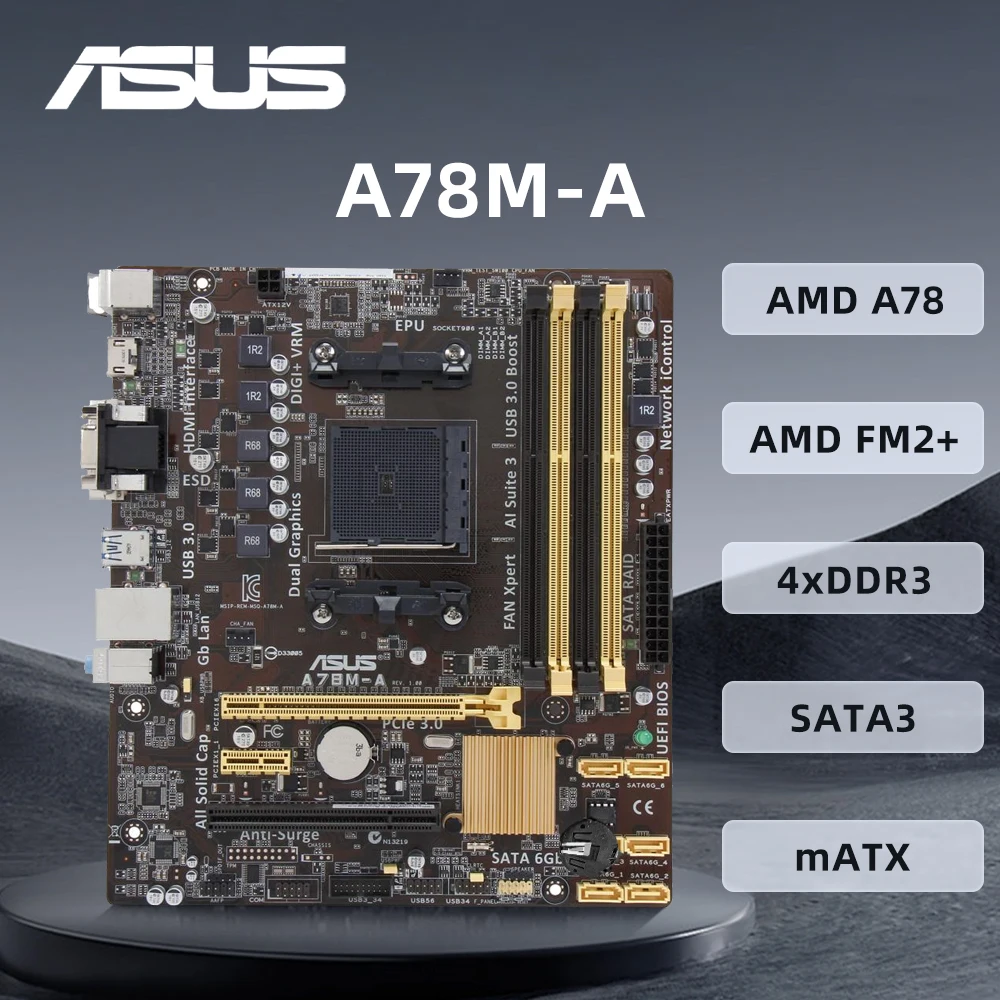 ASUS A78M-A Motherboard Support A10-7700K A8-6600K A8-6500T A6-7400K A6-6400K CPU 2400MHz 2×DDR3 HDMI Socket FM2/FM2+ mATX