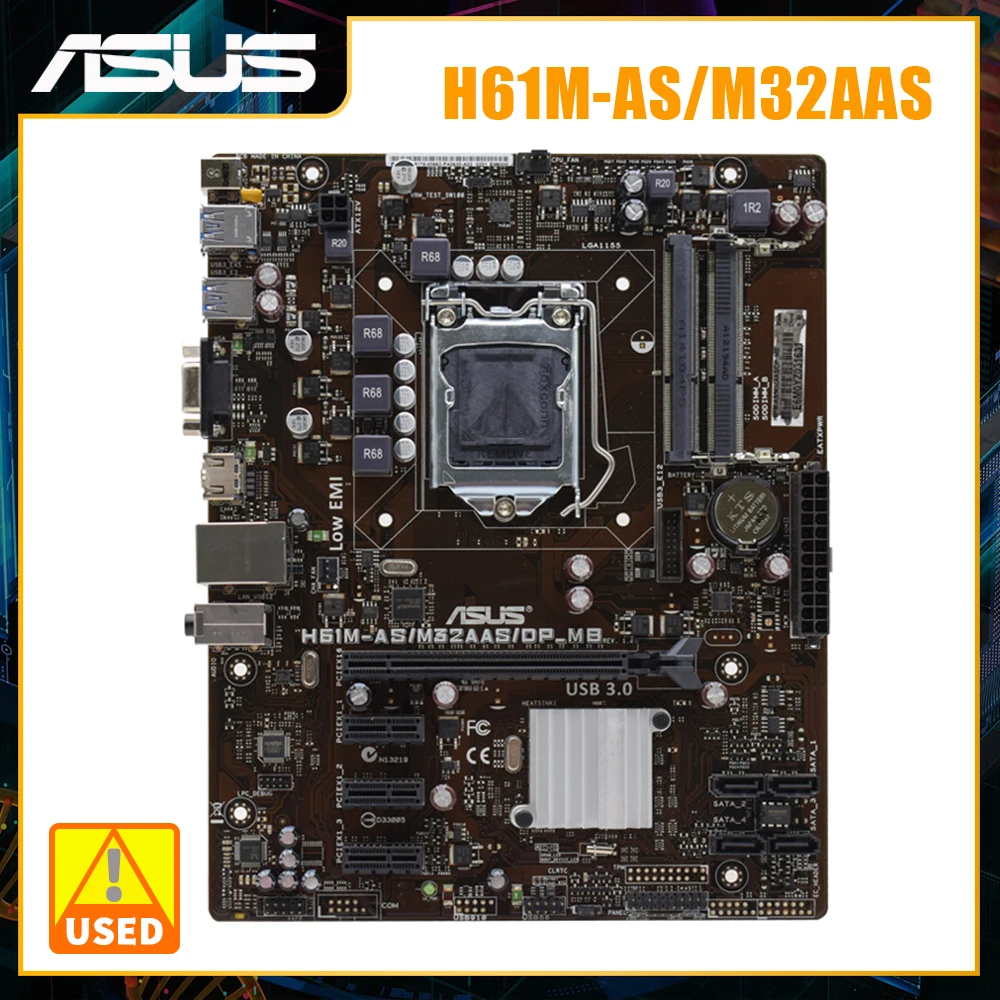 ASUS H61M-AS/M32AAS Motherboard LGA 1155 Support i5-3570K i5-3470 i7-3770K i3-3220 2100 CPU 2xDDR3 16GB PCI-E 2.0 ATX Mainboard