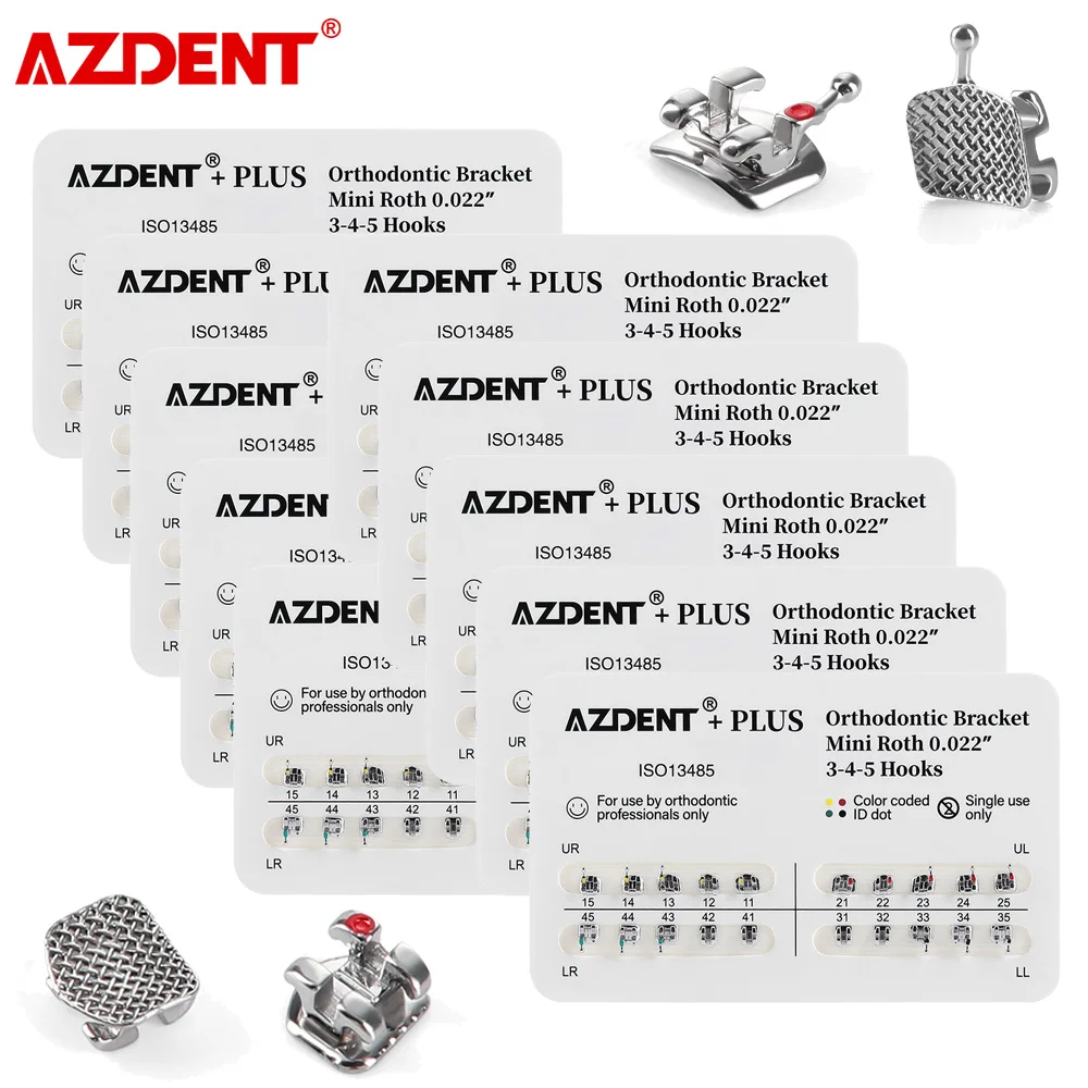 AZDENT 10 Packs PLUS Dental Orthodontic Mesh Base Brackets Mini/Standard Roth/MBT 022/018 with 3/345 Hooks Dental Materials