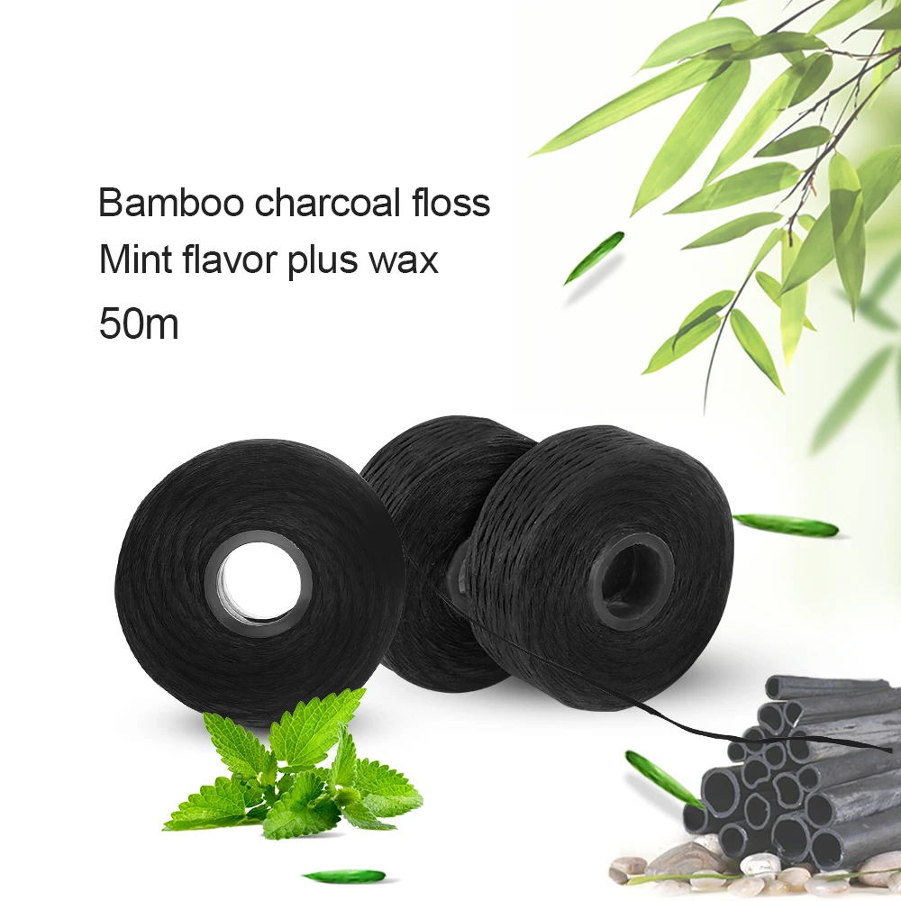 AZDENT 10 Rolls Dental Flosser Bamboo Charcoal Built-in Spool Wax Mint Flavored Replacement Flat Wire Floss 50M/Roll Total 500M