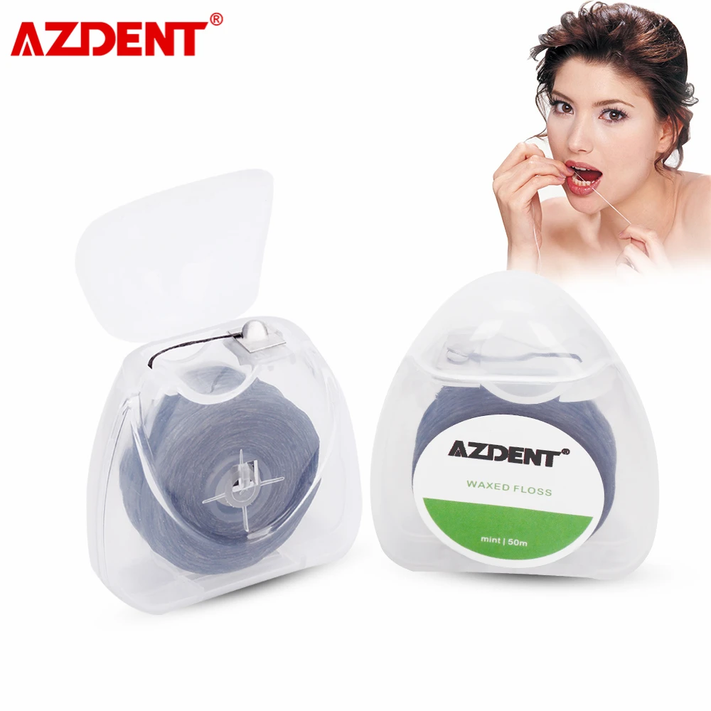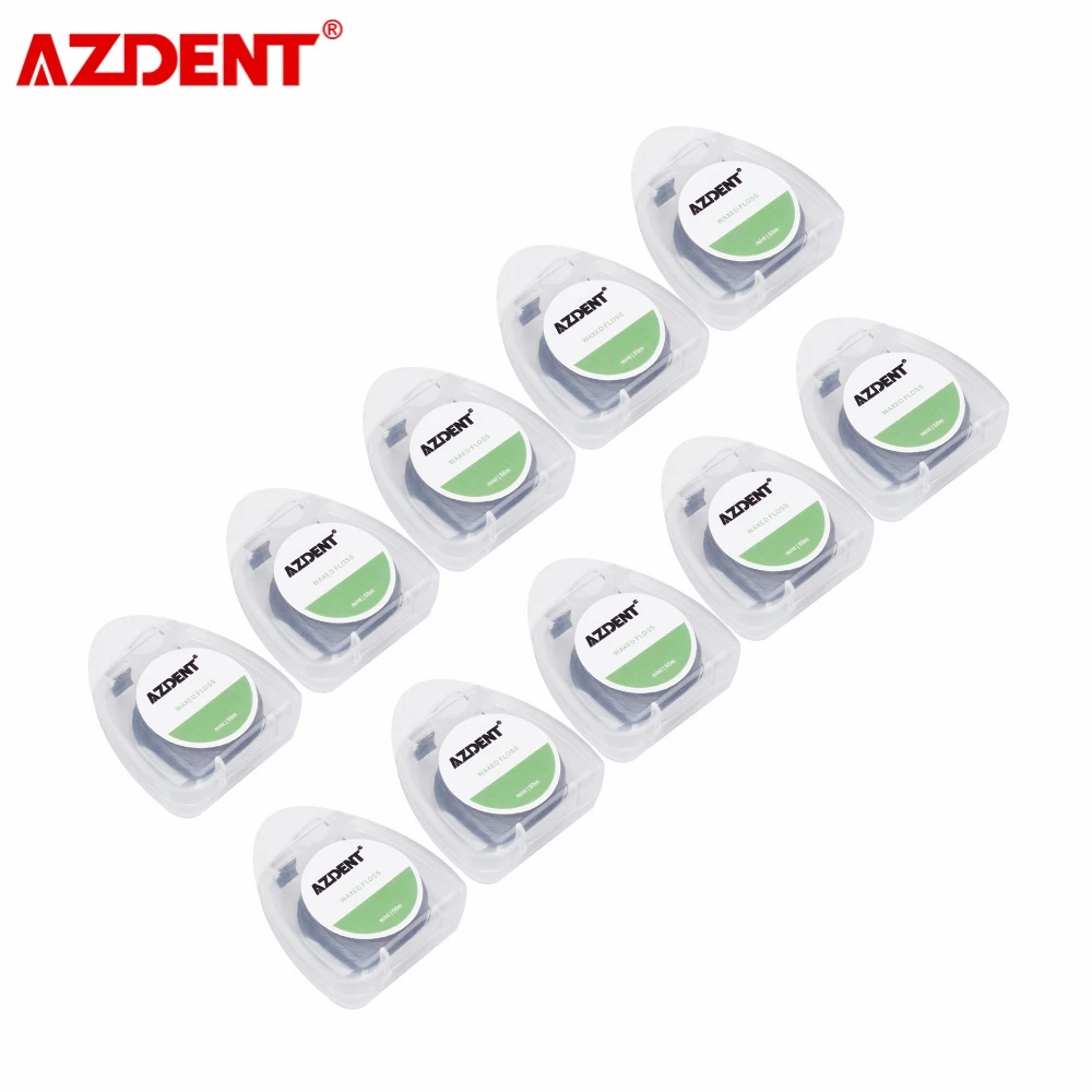 AZDENT 10 Rolls Dental Flosser Built-in Spool Wax Mint Flavored 50M/Roll 750D Bamboo Charcoal Black Dental Floss with Box
