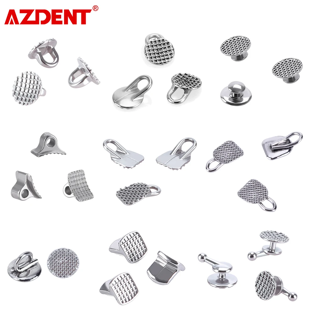 AZDENT 10Pcs/Bag Dental Orthodontic Lingual Buttons Monoblock / Mesh Base Bondable Metal / Ceramic Lingual Button