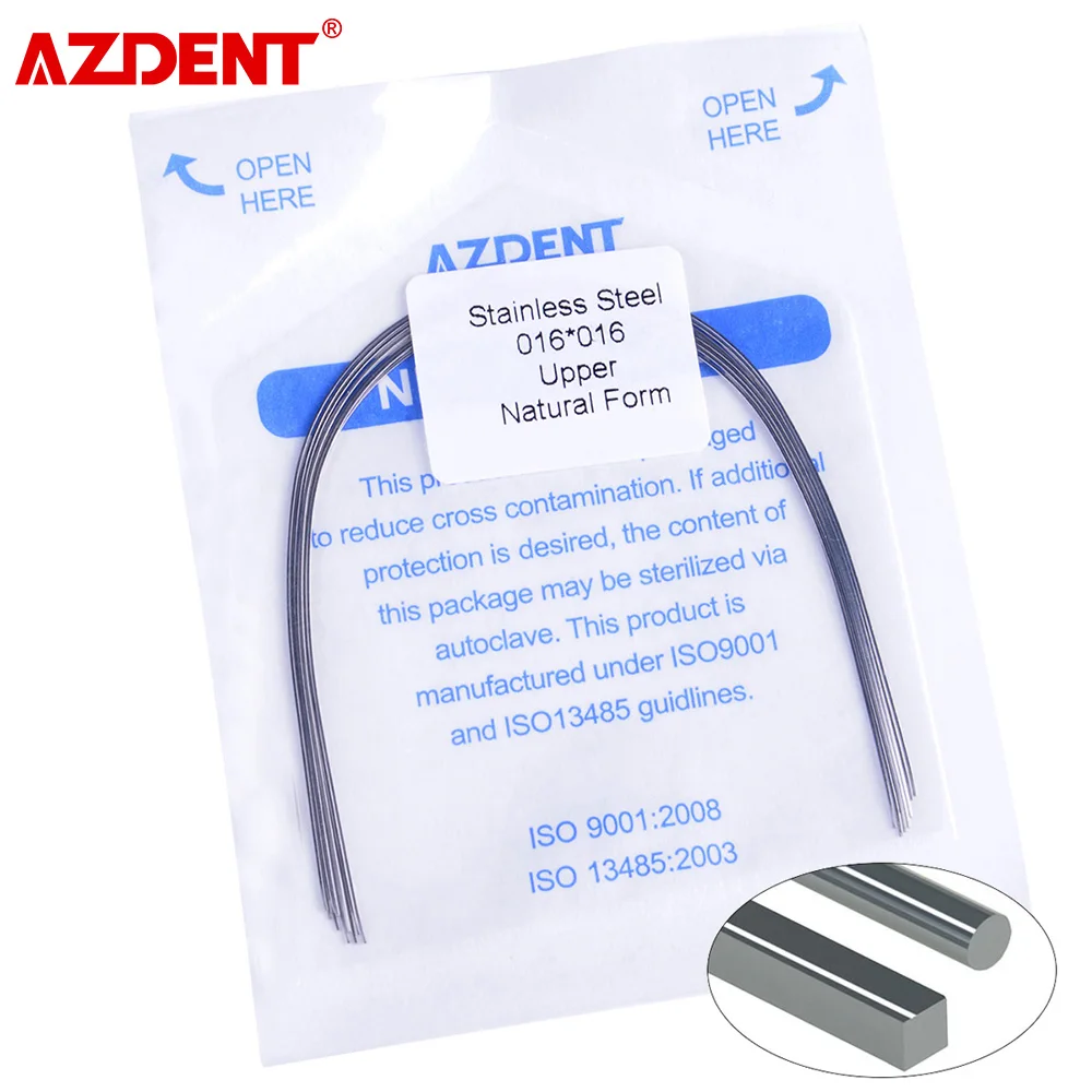 AZDENT 10pcs/Pack Dental Orthodontic Arch Wires Stainless Steel Rectangular / Round Natural Form Braces Wires Dentistry Material