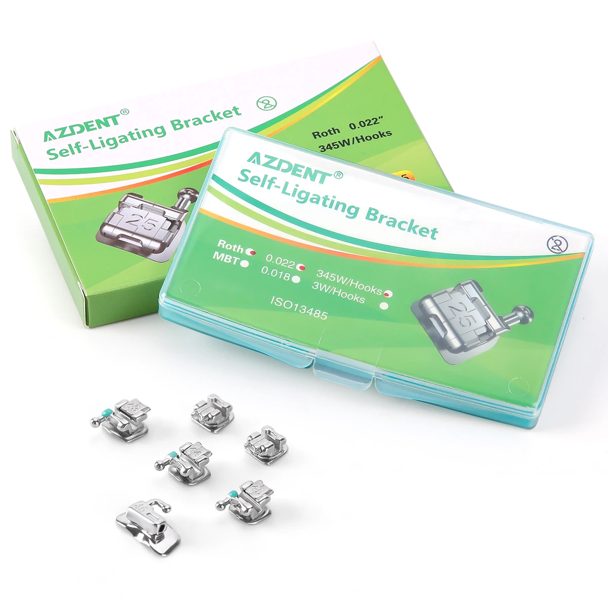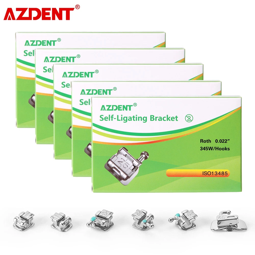 AZDENT 5 Boxes Dental Orthodontic Brackets Braces Passive Self Ligating Split Welding with Buccal Tube Roth/ MBT 0.022 345 Hooks