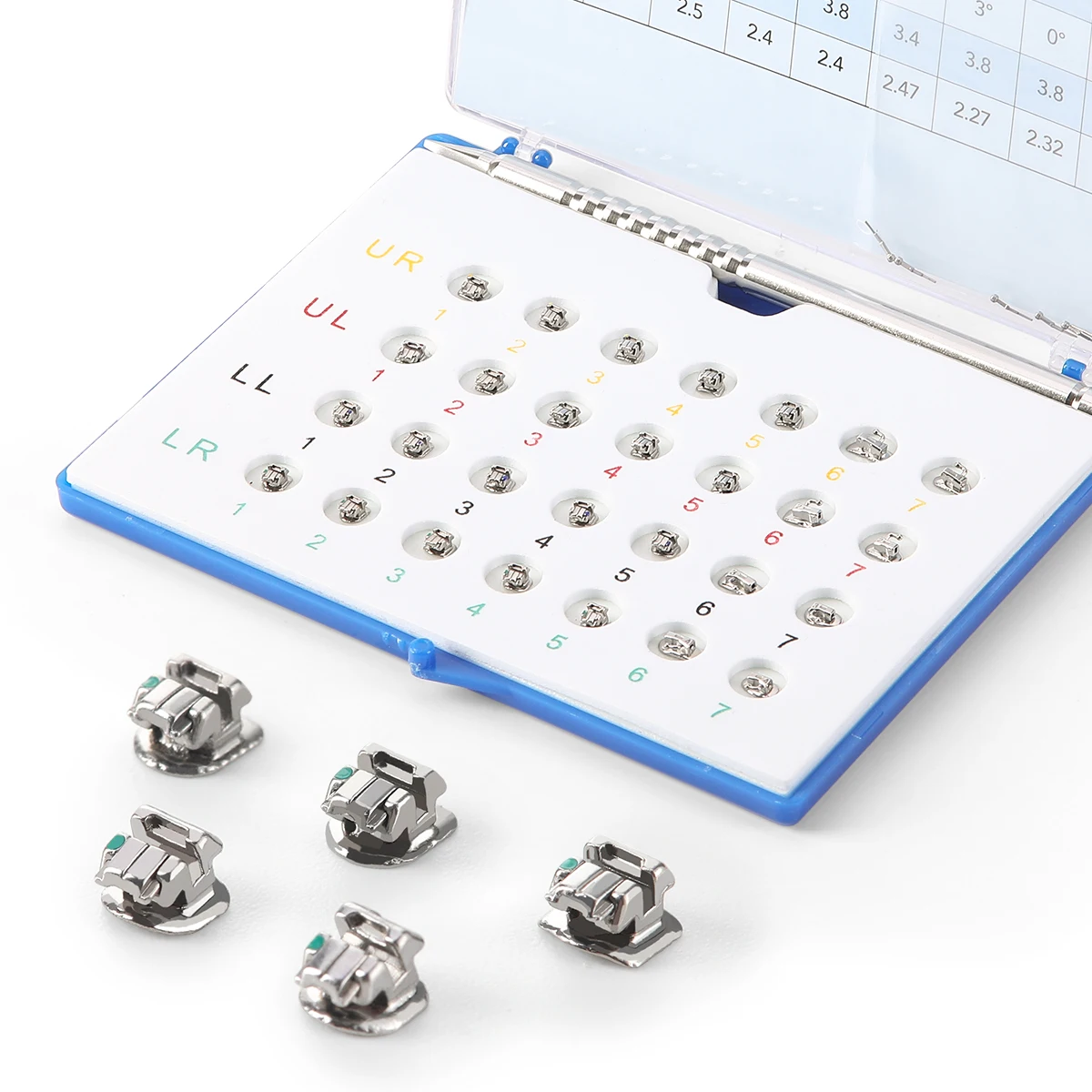 AZDENT 5 Packs Dental Orthodontic Braces Metal Self-Ligating Brackets Roth/MBT 3-4-5 Hook with Buccal Tube Dental Materials