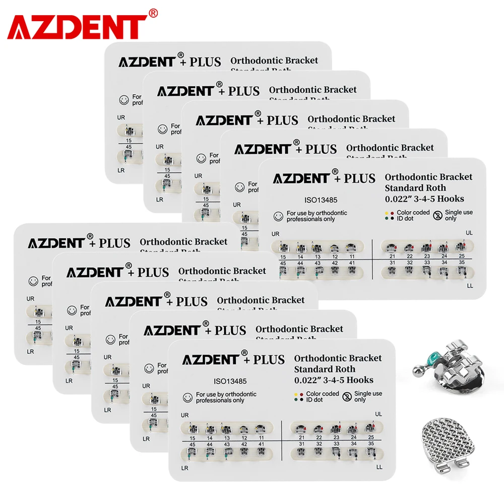 AZDENT 50 Packs=1000Pcs Dental Orthodontic Brackets PLUS Metal Mesh Base Dental Braces Mini/Standard Roth/MBT 022/018 with Hooks
