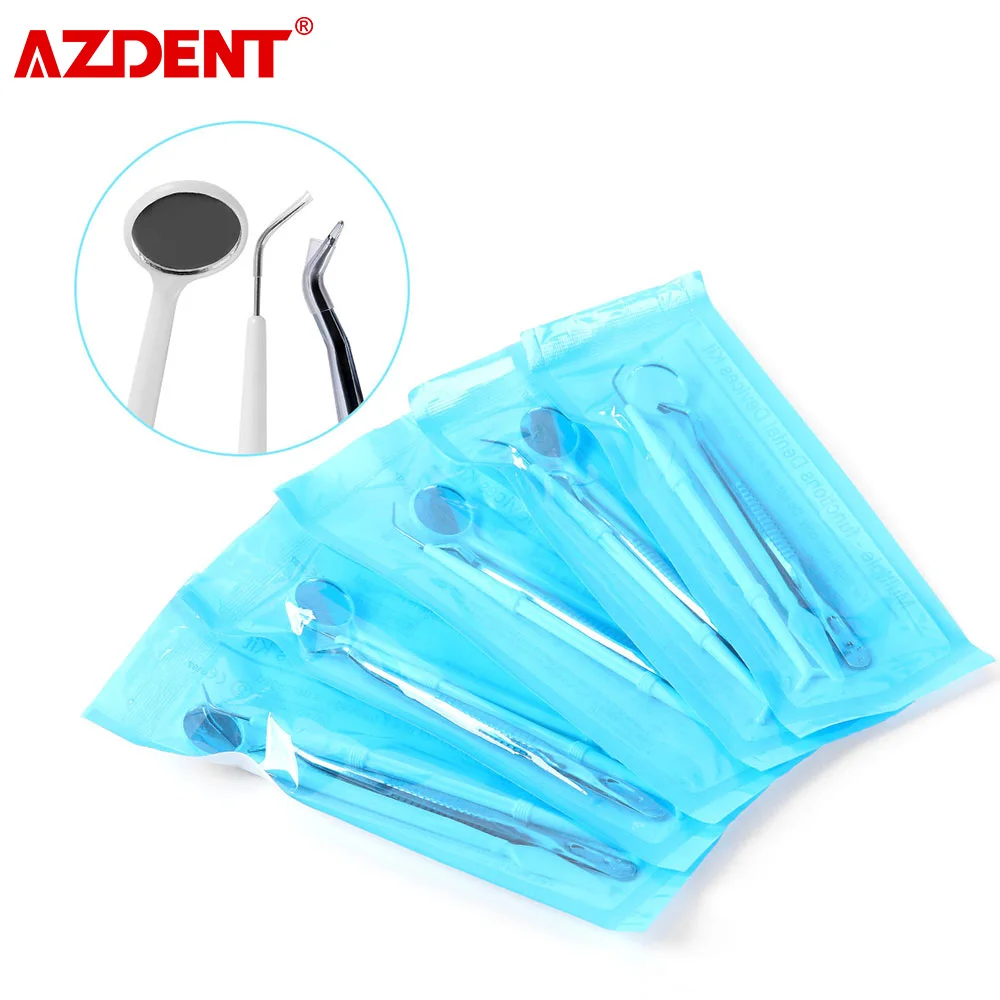 AZDENT 50 Sets Dental Mirror Forcep Probe Kit 3pcs/Set Disposable Oral Hygiene Instruments Multiple-function Dental Devices Kit