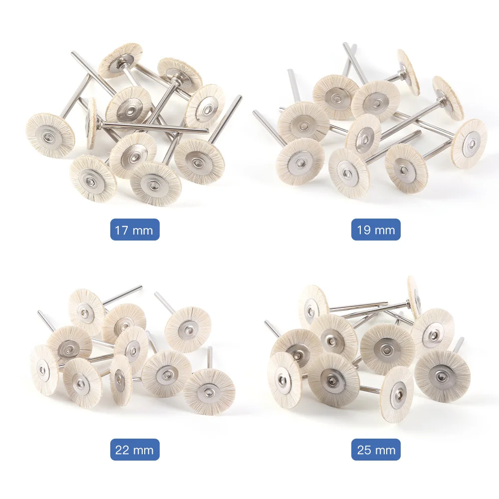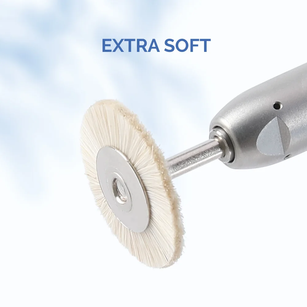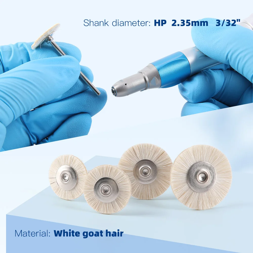 AZDENT 50Pcs Dental Polishing Brush Wheel HP2.35mm Grey/ White Goat Hair Extra Soft Polishing Brush Dental Materials