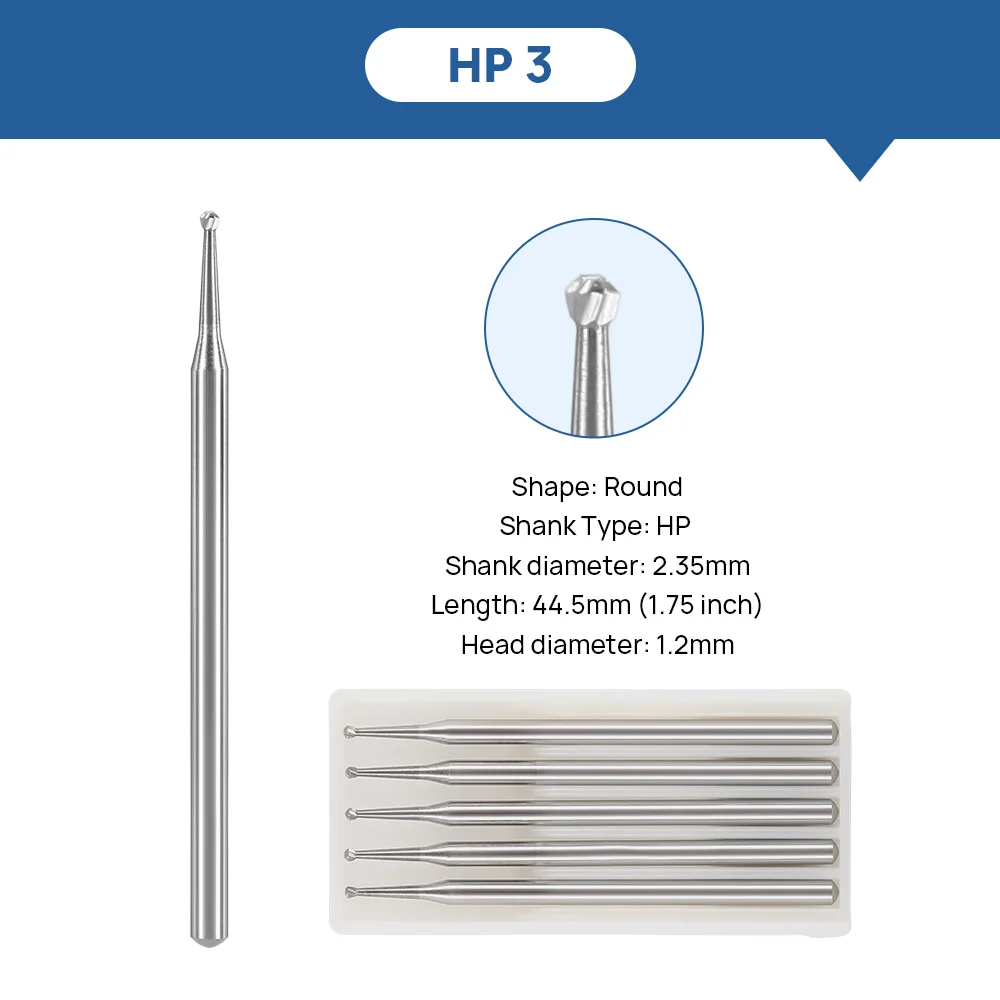 AZDENT 5Pcs/Box Dental Round Carbide Burs HP Bur Drill For Straight Handpiece and Micro Motor Diameter 2.35mm Length 44.5mm