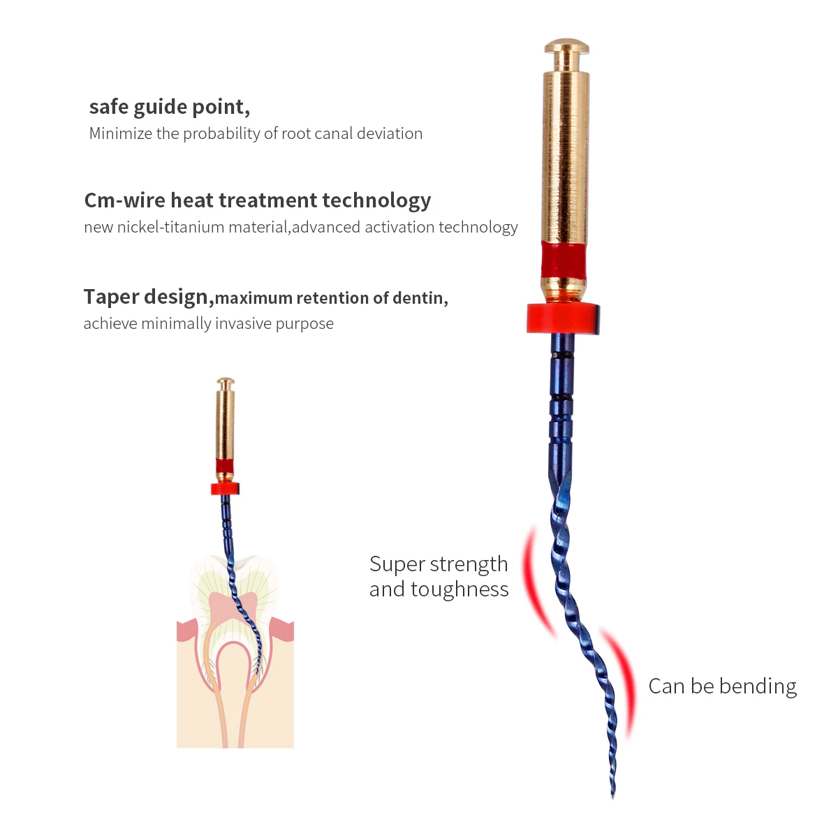 AZDENT 6pcs/Box Dental Heat Activated Canal Root Files SX-F3 25mm Dentist Tools Can Bend for Preparing Root Canal Treatment