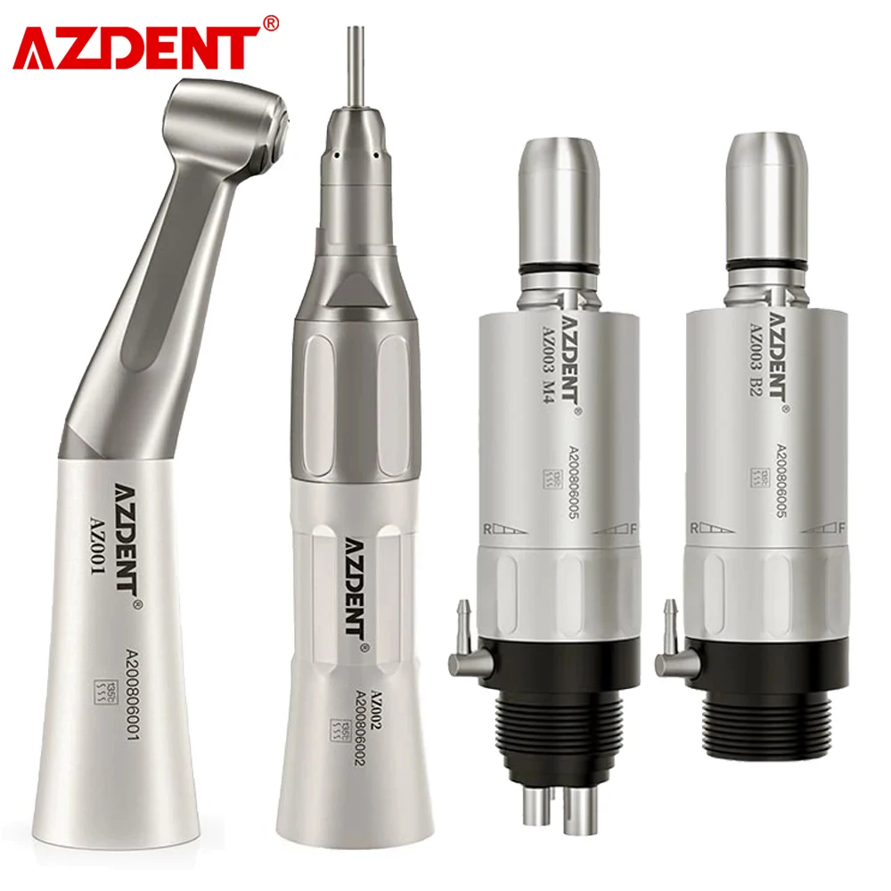 AZDENT Dental 1:1 Contra Angle Straight Nose Cone Air Motor 2 / 4 Holes Low Speed Handpiece External Water Spray for 2.35mm Burs