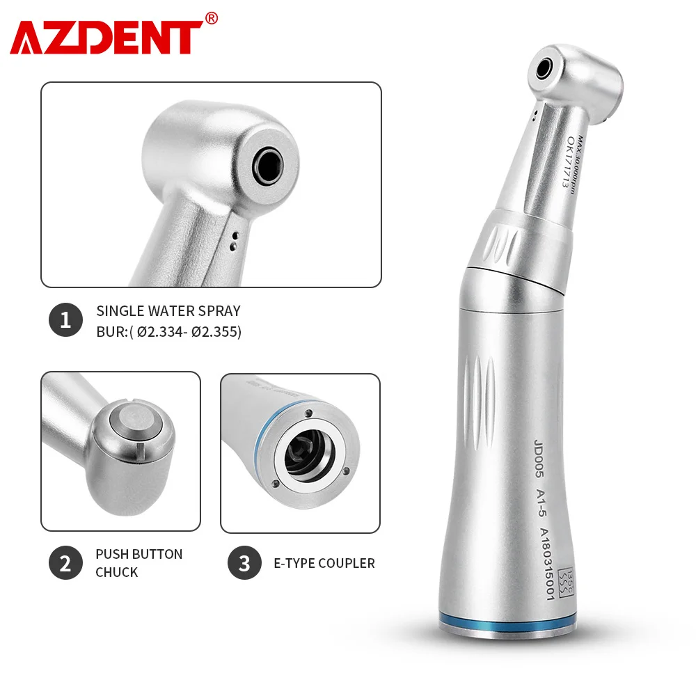 AZDENT Dental 1:1 Ratio Contra Angle Inner Internal Water Spray Pipe E-type Low Speed Handpiece Push Button