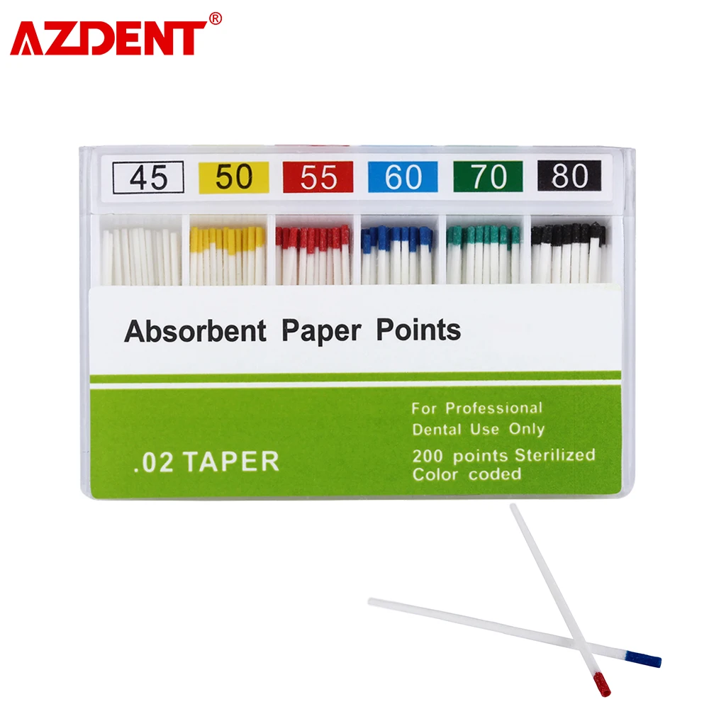 AZDENT Dental Absorbent Paper Points Taper 02 04 06 15-40# F1 F2 F3 Endodontics Root Canal Clean Tips Disposable Dental Material