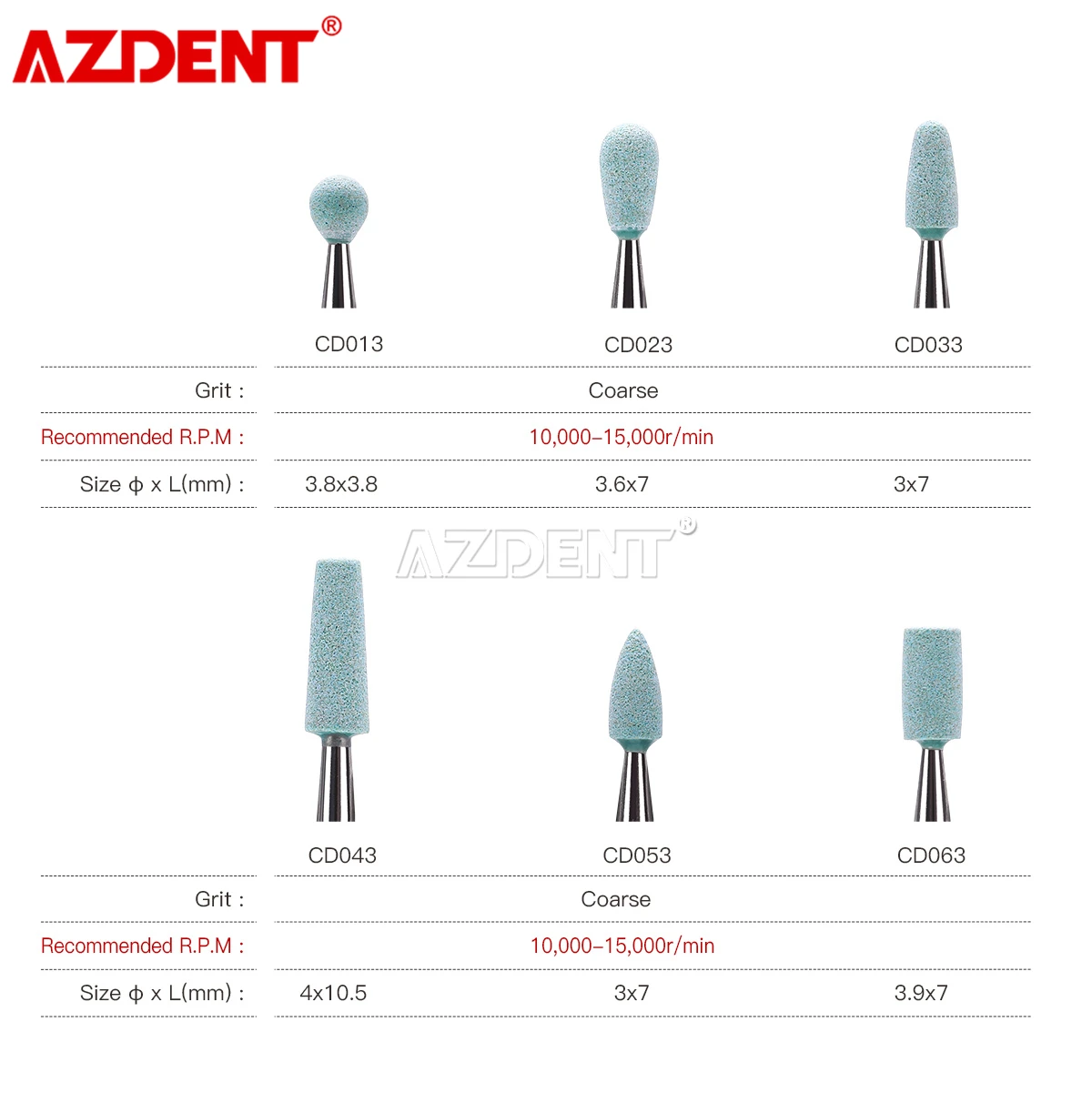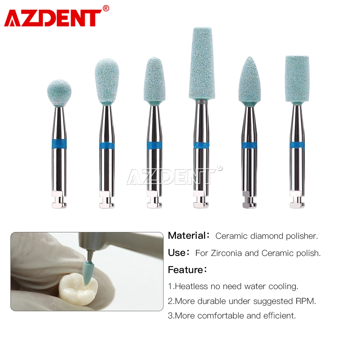 AZDENT Dental Ceramic Diamond Polishing Head Polisher Stone Grinder Zirconia Porcelain Coarse Grit Shank Diameter RA 2.35mm