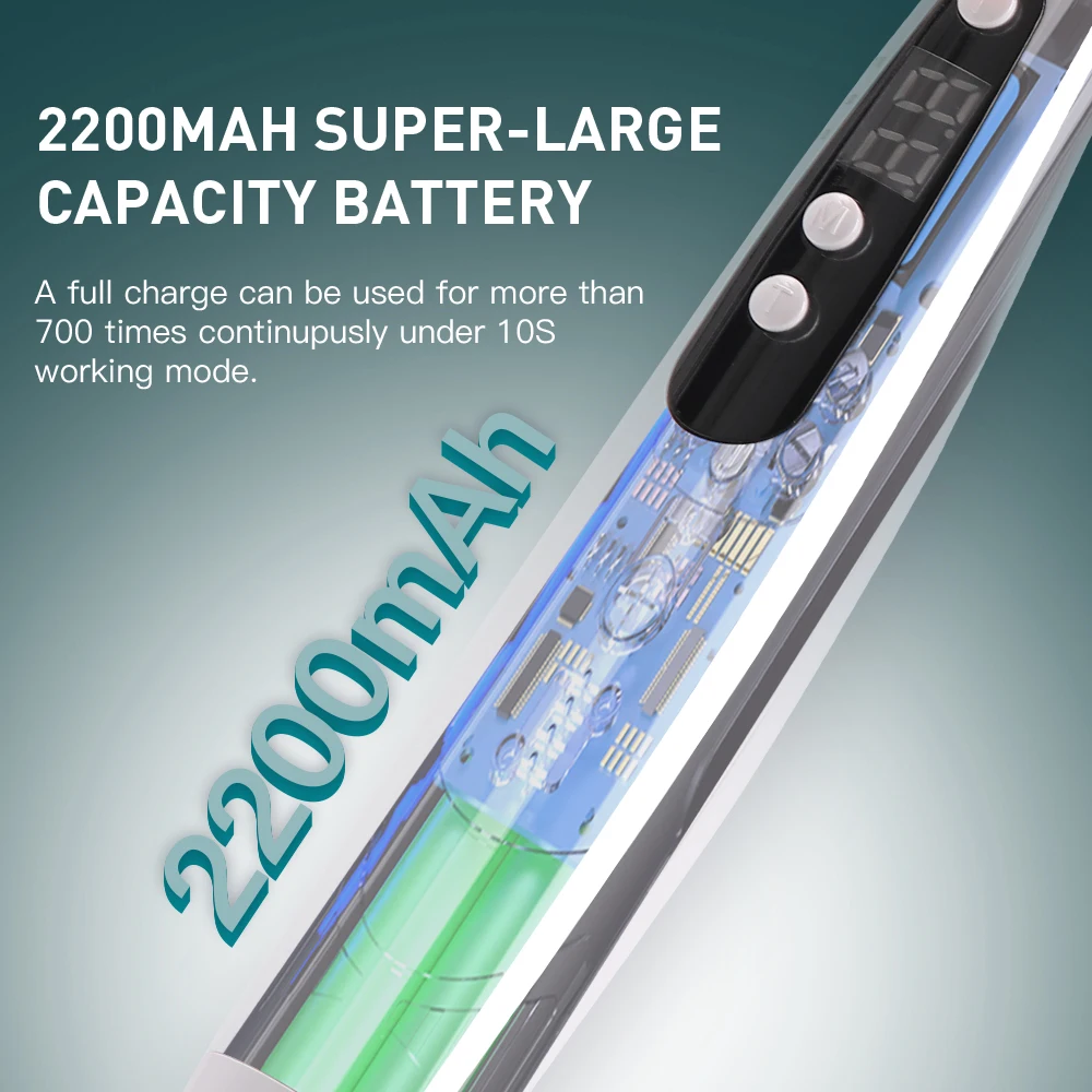 Progressive: The screen shows 02, the blue light power increase stronger continually, after 5 seconds reaches to the highest power,light intensity: 1000mW/cm2 ~1400mW/cm2.