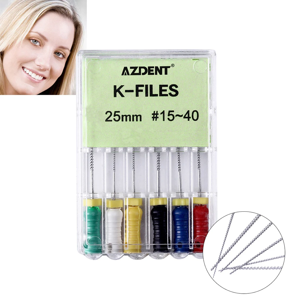 AZDENT Dental Niti Hand Use Files Endodontic Instruments Root Canal File 6Pcs/Pack H-File K-File REAMERS 21/25mm #15-40