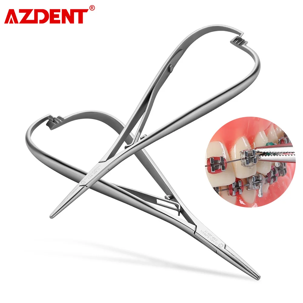 AZDENT Dental Orthodontic Elastic Placement Ligature Tie Holder 14cm Extra Fine Beak Stainless Steel Ligation Ring Dental Tools