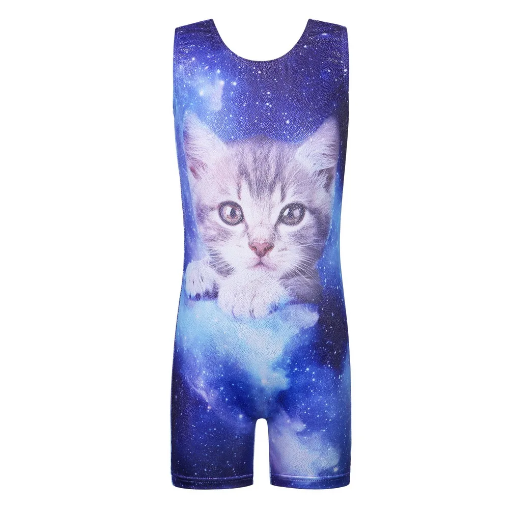 BAOHULU Ballet Leotards for Girls Gymnastics with Shorts Unitards Galaxy Cat Pattern Print Biketards Kids Dance Wear Costumes