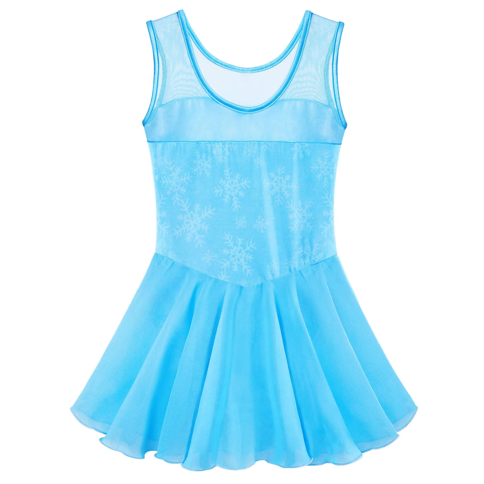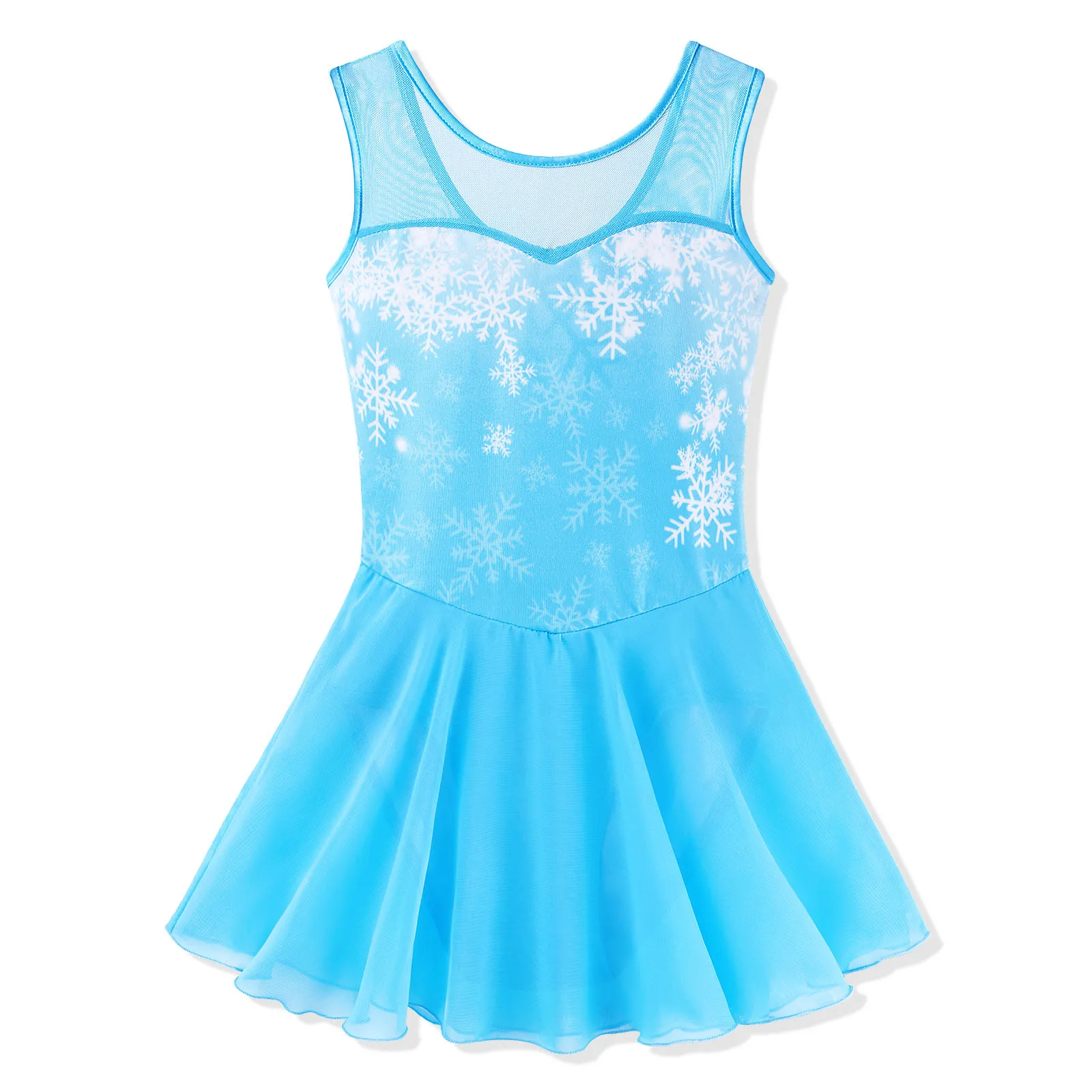 BAOHULU Cotton Ballet Dress Gymnastics Leotard for Girl Sleeveless Snowflake Print Skirt Chiffon Tulle Performance Dance Costume