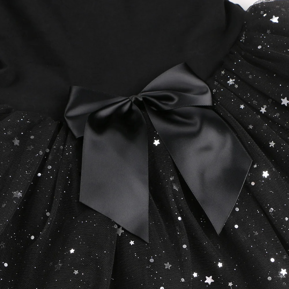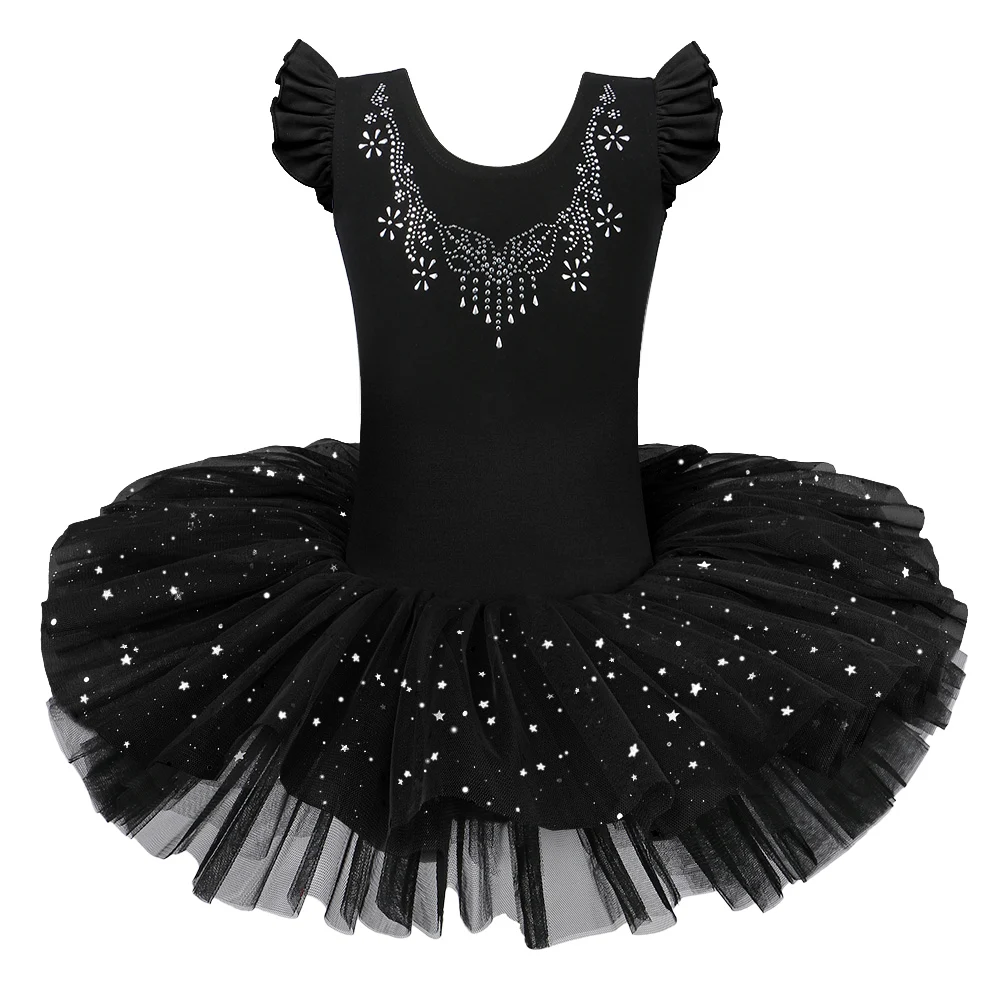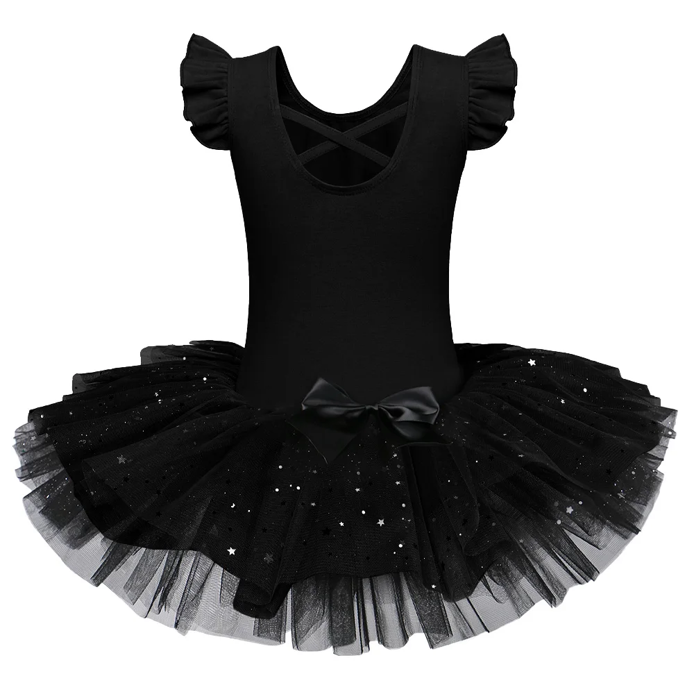 BAOHULU Girls Ballerina Ballet Dress Rhinestone Decro Bow Design Dance Tulle Skirt Girls Short Sleeve Performance Princess Dress