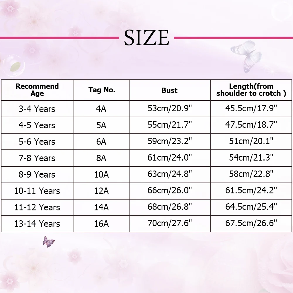 | Size~Age | 4A(3-4Y), 6A(5-6Y), 8A(7-8Y), 10A(9-10Y), 12A(11-12Y), 14A(13-14Y), |