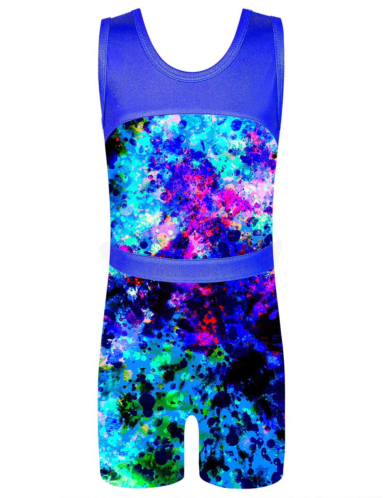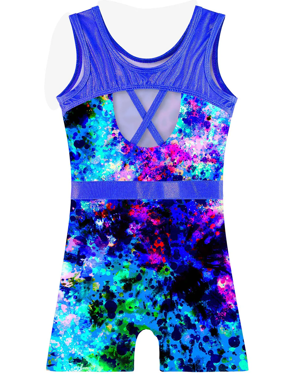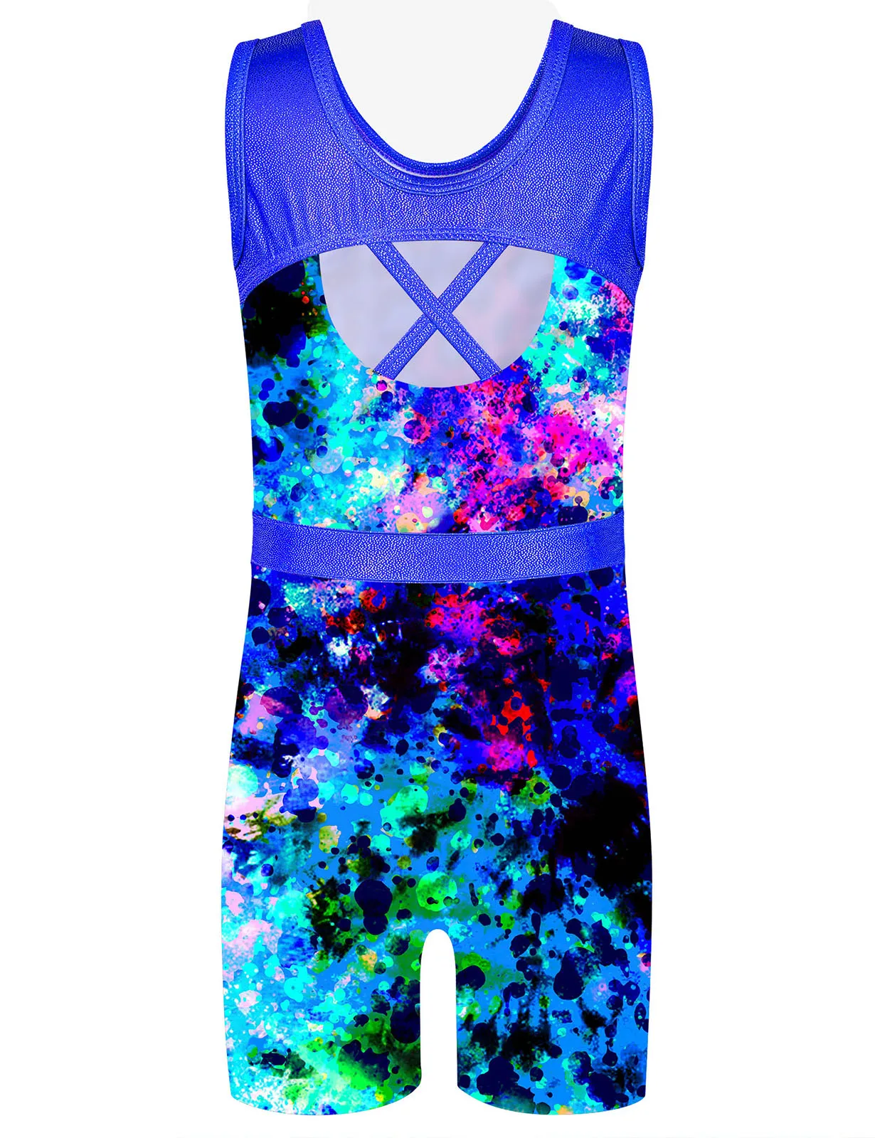 BAOHULU Kids Unitard Biketards with Shorts Sparkle Gymnastics Leotard Sleeveless Professional Training Clothes Dance Costumes