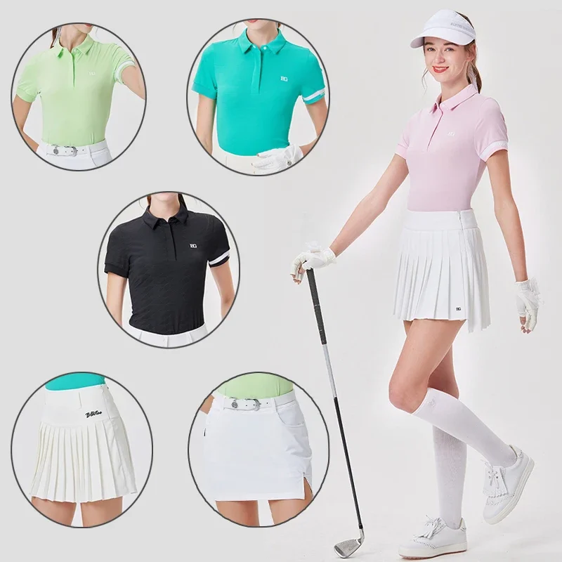 BG Female Sports Short-sleeved Polo Shirt Women Tennis Quick-dry Cooling Tops High Waist Pleated Golf Skirt Summer Golf Suit