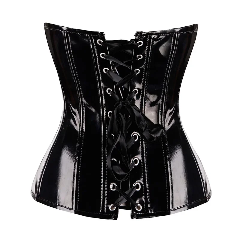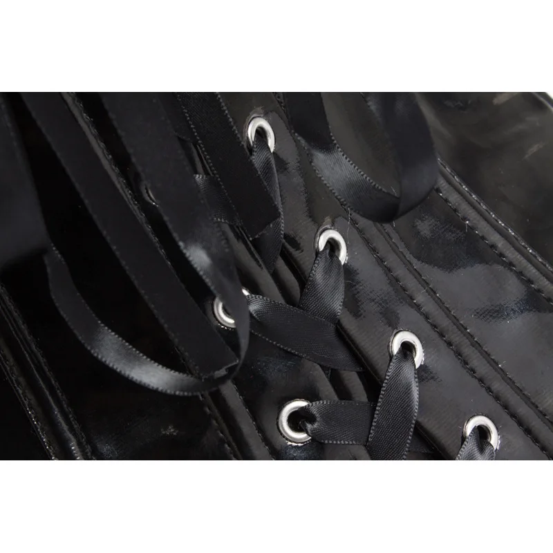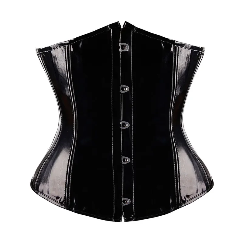 Black Glossy PVC Leather Corset Underbust Bustier Top Sexy Women Waist Cincher Punk Lingerie Shape Body Belt Plus Size Costume