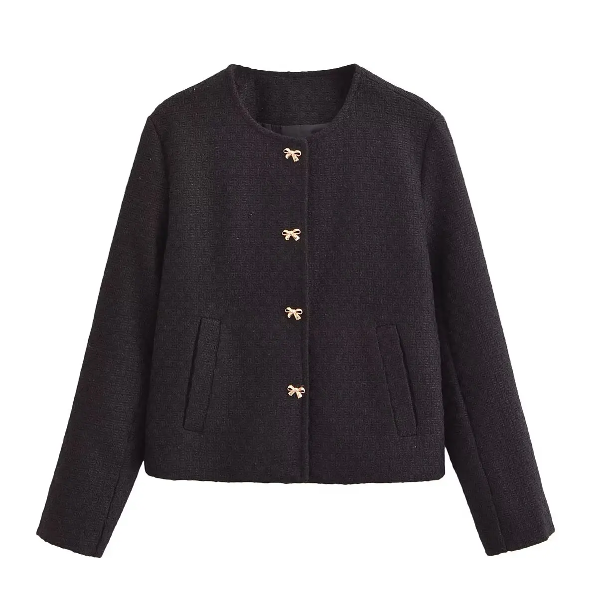 Blazers Women’s Jacket Coat 2024 With Pockets Elegant Fashion Solid inszart Black Outwear Bow Button Jackets Jaquetass Femininas