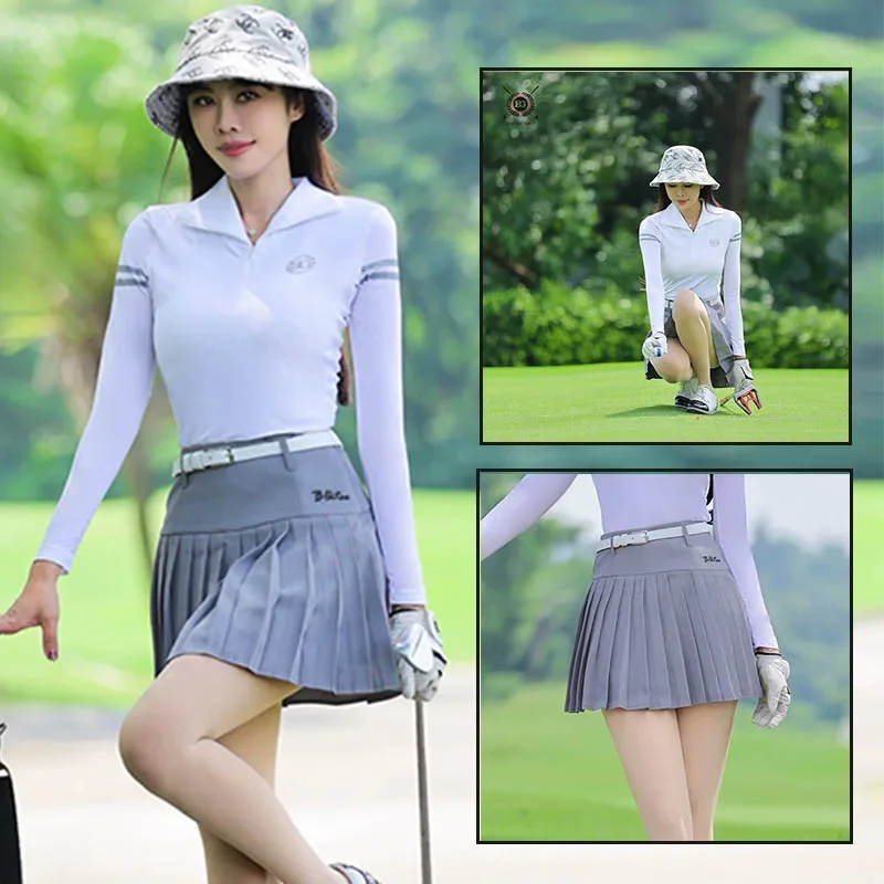 Blktee Golf Clothing Autumn Long Sleeve T-shirt Fashion Slim Shirt School Style Golf Jersey Skirts High Waist Pleated Slim Skirt