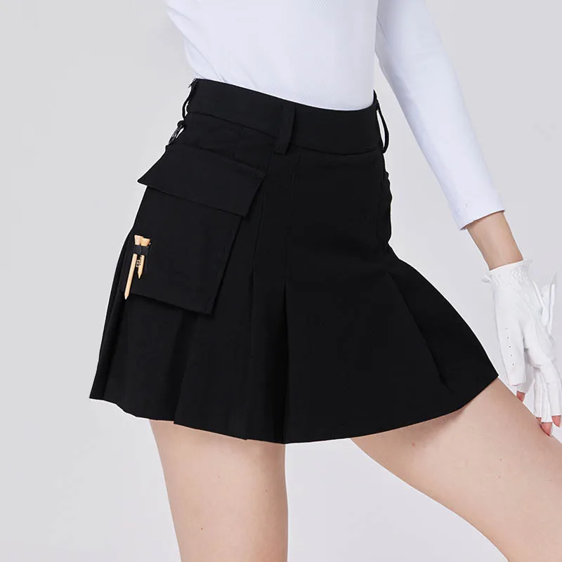 Blktee New Golf Skirt Women’s Elastic Waist Sports Skirts Ladies Pleated Pockets Short Skort High Waist Tennis High-end Golf Culottes