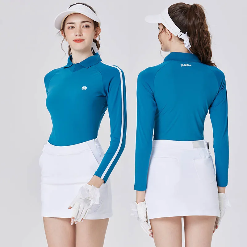 Blktee New Golf Women Clothing Long-sleeve Slim T-shirt Autumn Winter Striped Breathable Tops Ladies Fashion Elastic Golf Jersey