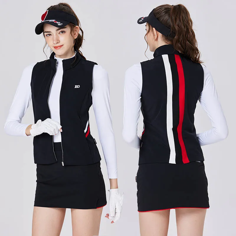 Blktee Sleeveless Sports Vest Golf Clothing Winter Women Jacket Waterproof Zipper Leisure Windbreaker Autumn Ladies Striped Slim Coat