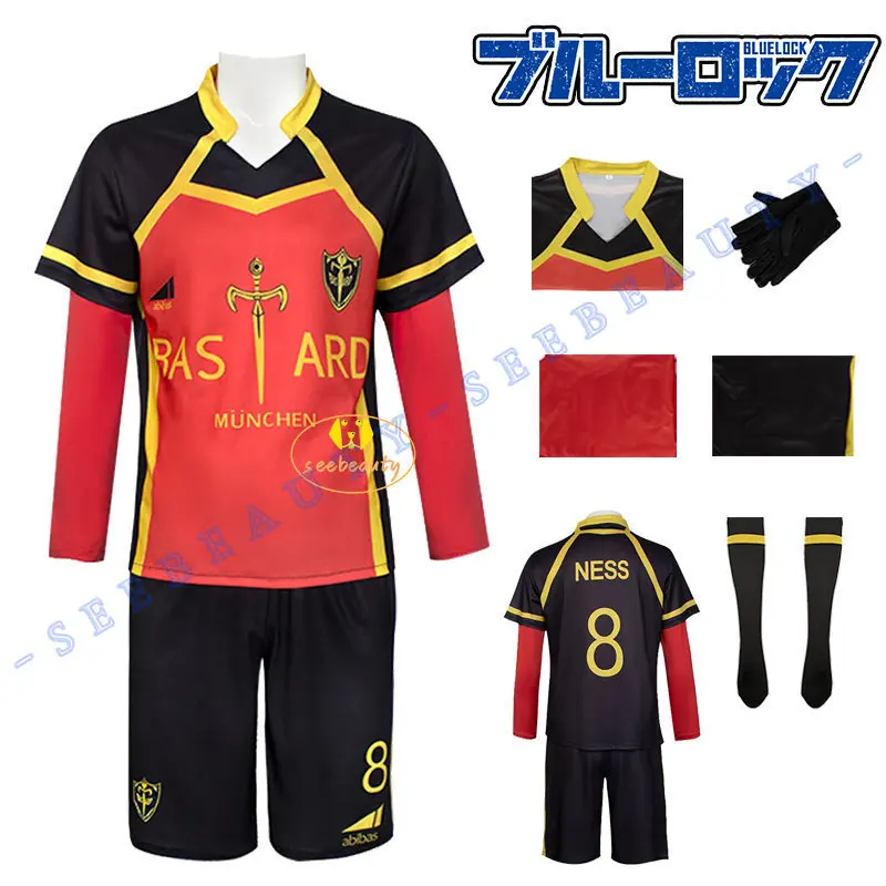 Blue Lock Bastard Munchen Cosplay Football Jersey Anime Costume Yoichi Isagi Ness Kaiser Kurona Red Uniform Men Boys Halloween