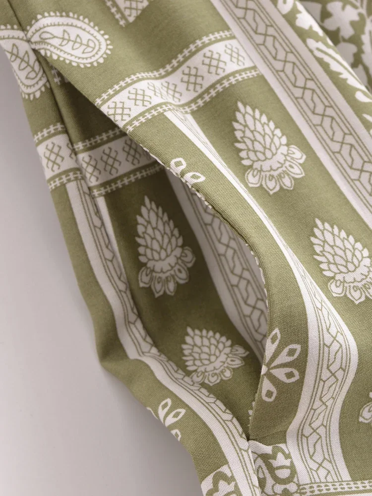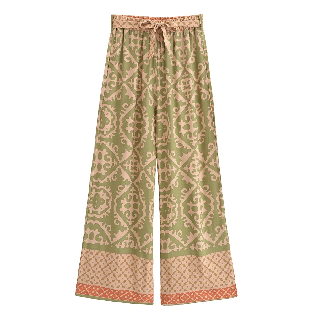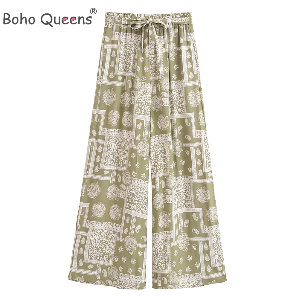 Boho Queens Fashion Women Geometric Floral Print Wide Leg Bohemian Pants with Pockets Lady Loose Rayon Boho Pant Trousers
