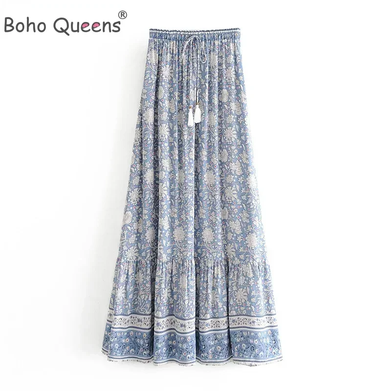Boho Queens Fashion Women Hippie Beach Bohemian Floral Print Skirts High Waist Maxi A-Line Skirt Femme