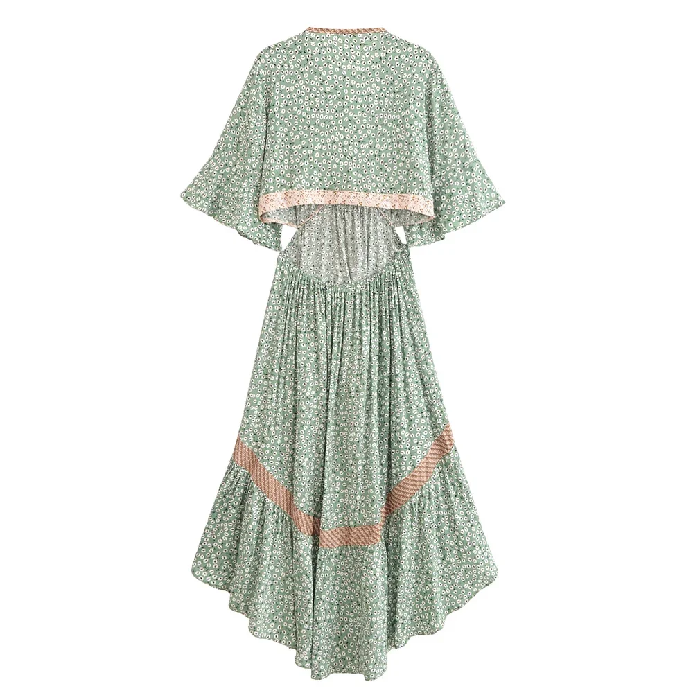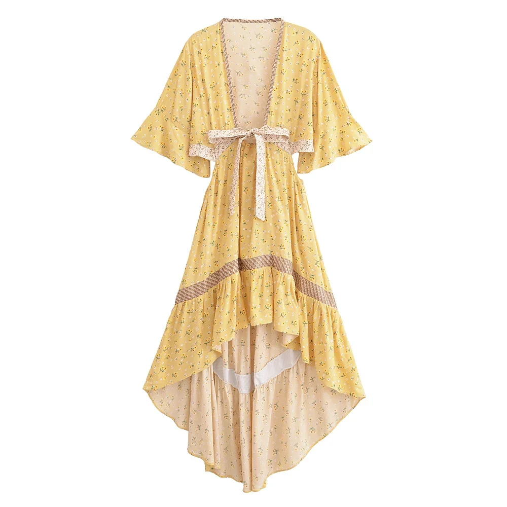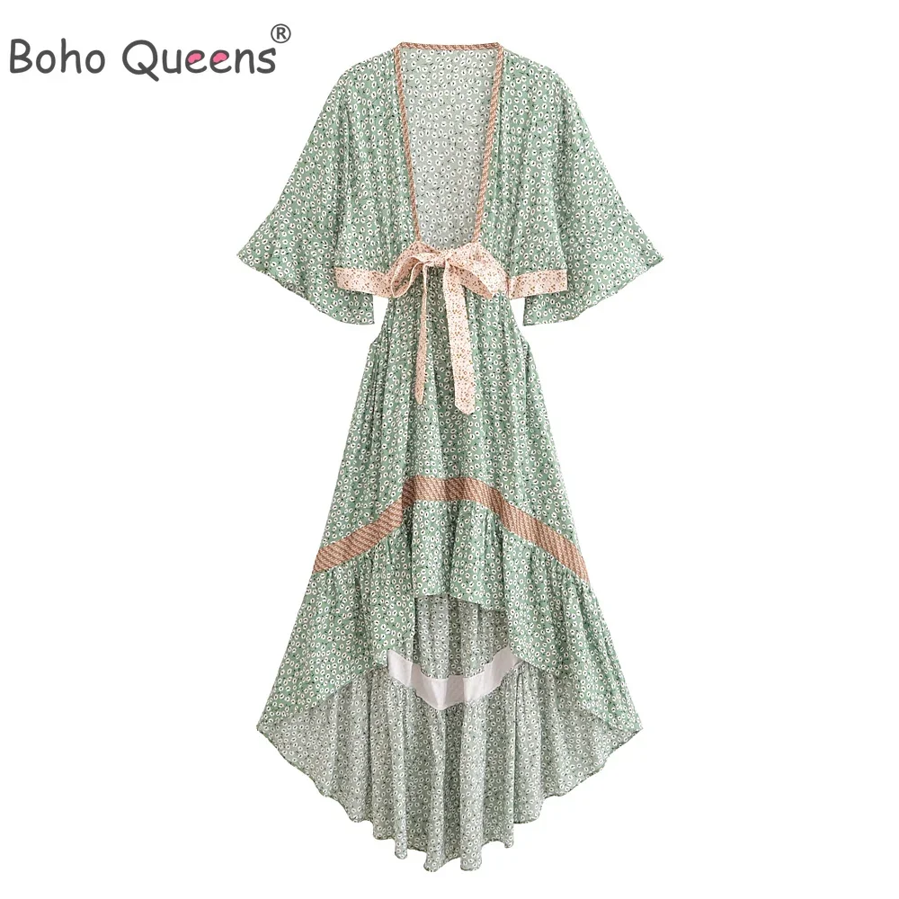 Boho Queens Women Hollow Out Sexy Beach Dress Bohemian Lady Short Sleeve High-Low Rayon Summer Boho Dresses Robe