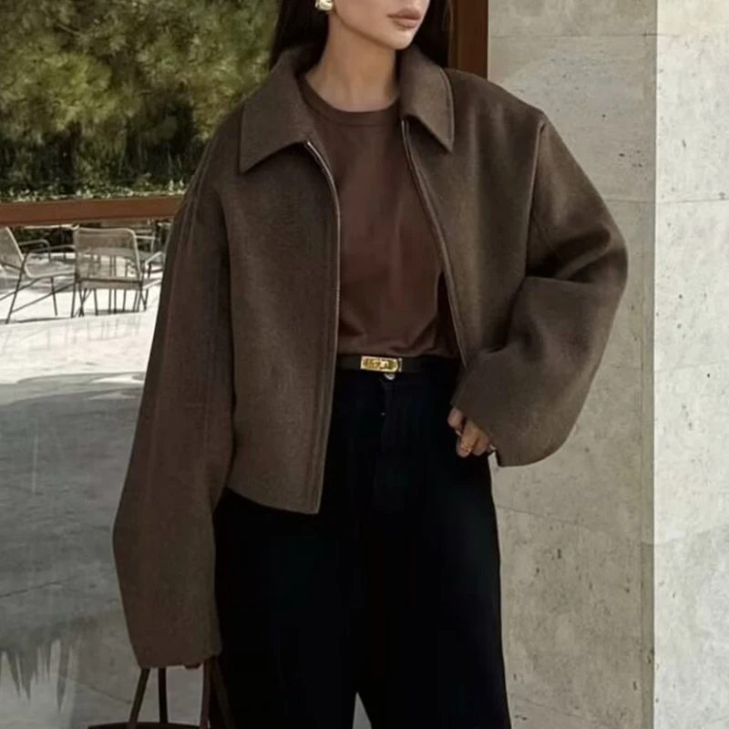Bomber Jackets Women’s Coat 2024 inszart Solid With Zipper Long Sleeve Outwear Elegant Cropped Coat Gray Woman Jacket Coat