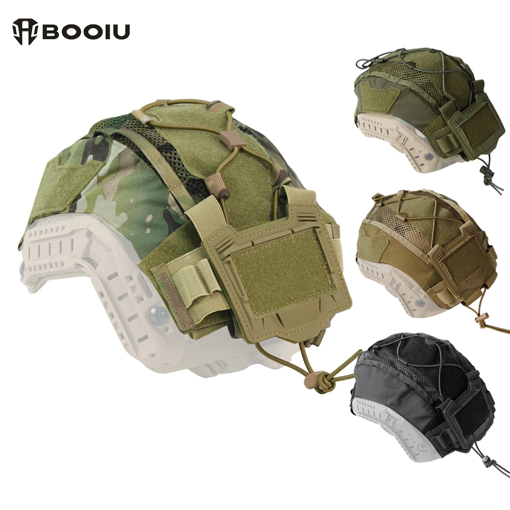 BOOIU Tactical Helmet Cover with Battery Pouch for Fast Helmet 500D Nylon Paintball Airsoft Helmet Cover Battery Pack Hunting