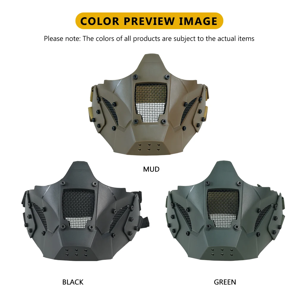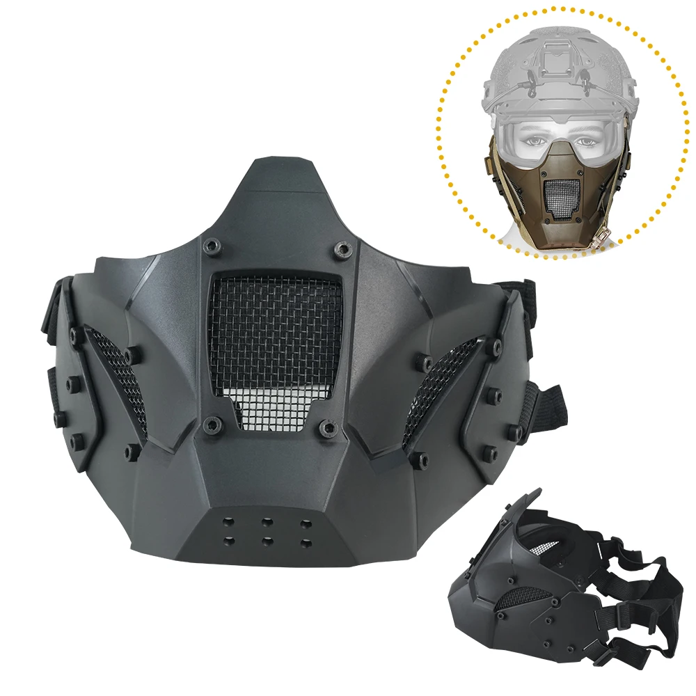 BOOIU Tactical Helmet Half-Face Mask Iron Mesh Windproof Mask Air Gun Headdress Cycling Mask Outdoor Sports Hunting Accessories