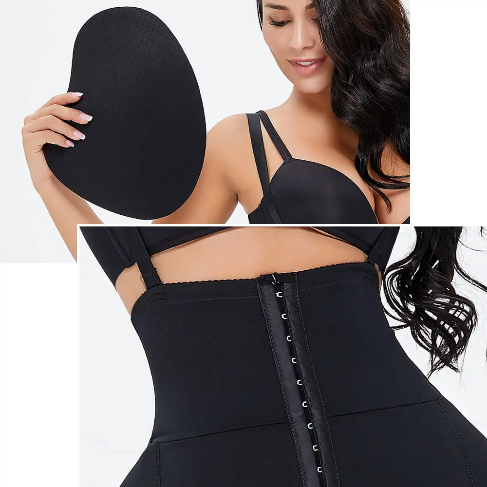 Women Slimming Bodysuit with Hip Pad Waist Trainer Body Shaper Tummy Control Adjustable Strap Hooks...